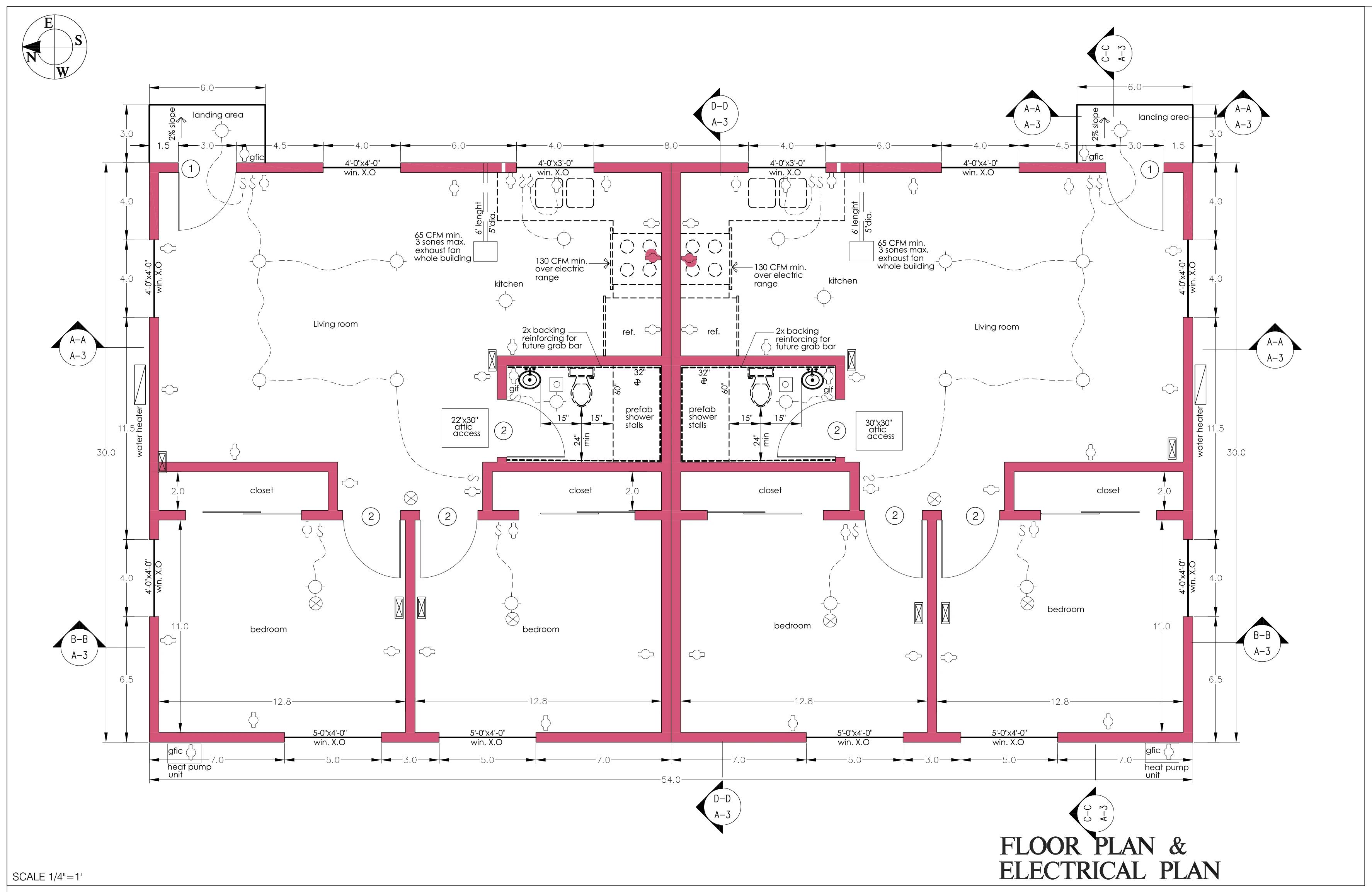 A single-story, side-by-side duplex ADU with two 810 sq ft units